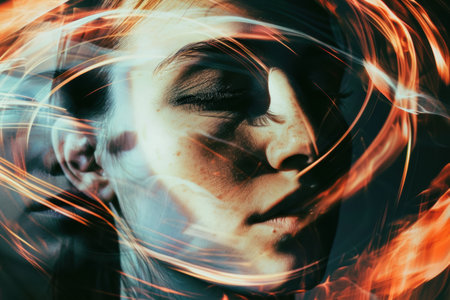 Abstract Portrait of Man with Artistic Light Effects and Motion Blur.