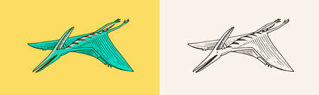 Dinosaur Pterosaur, skeletons, fossils, winged lizard. American Prehistoric reptiles, Jurassic Animal. Engraved vintage Hand drawn sketch for t-shirt print or poster.