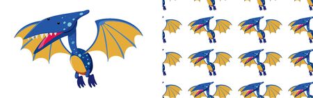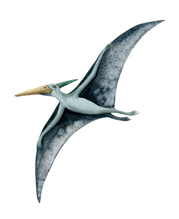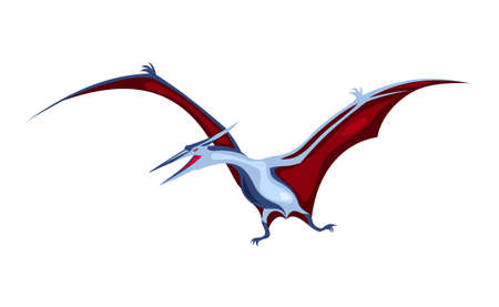 Pterosaur. Flying archosaurus pterodactyl, extinct ancient winged lizard, Jurassic period. Mesozoic era. Colorful vector isolated illustration hand drawn. White background