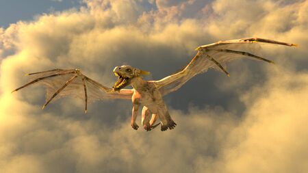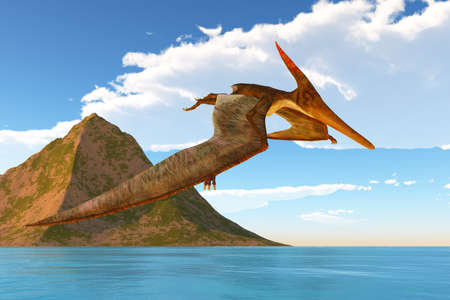 Flying pterodactyl against the beautiful cloudscape 3d illustration