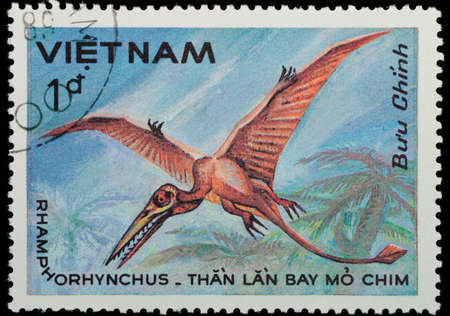VIETNAM - CIRCA 1984: A stamp printed in Vietnam shows prehistoric animal Rhamphorhynchus, circa 1984