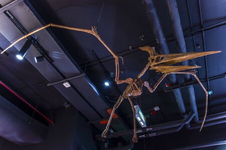 Lampang, Thailand - Sep 10, 2019: a fossil of Pteranodon hanging on ceiling at Lampang Fossil Geology and Natural science Museum.