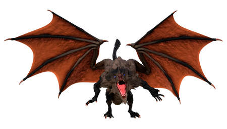3D rendering of a fairy tale vampire dragon isolated on white background