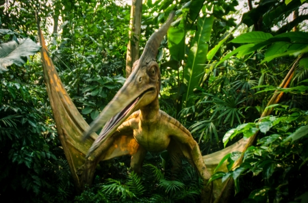 Pterosaurs, or flying lizards figure in the park is an approximation to reality