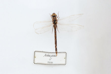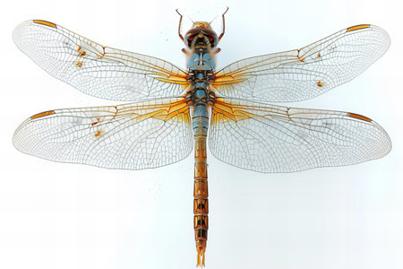 Macro shot of a dragonfly on a white background. Close-up
