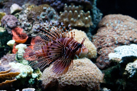 Lionfish in a coral aquarium.