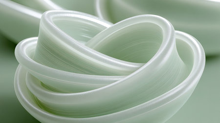 This image features an abstract composition of translucent spirals, highlighting their elegant curves and soft color palette in a contemporary minimalist style.