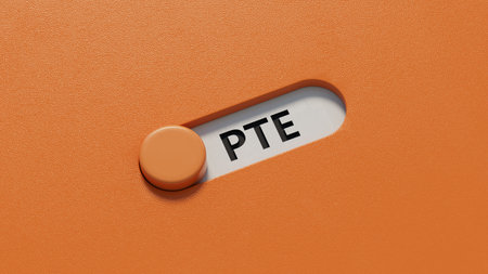 Three slide switch spelling with the letters PTE.close up of slide switch spelling,Business Concept.3D rendering.
