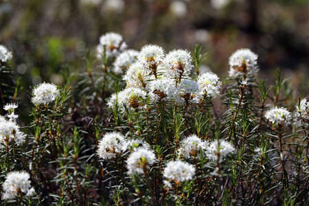 ledum palustre. Marsh tea during flowering in northern Siberia