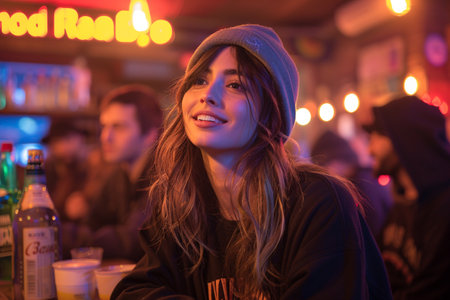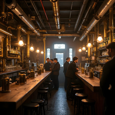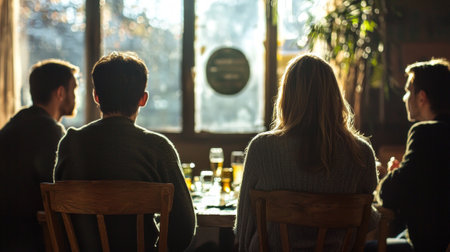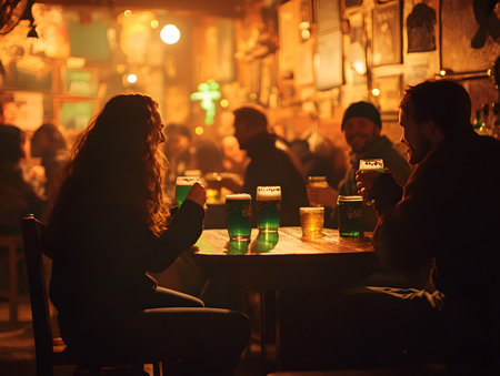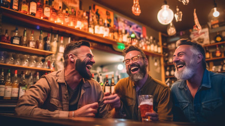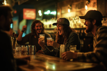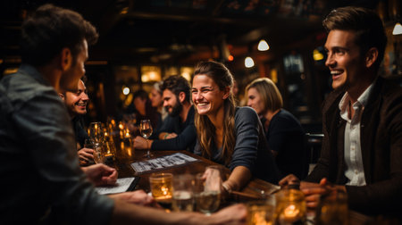A cozy bar setting captures the essence of evening socializing with friends over drinks.