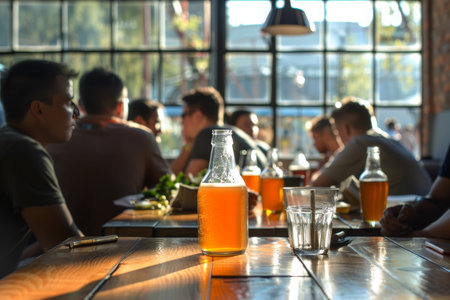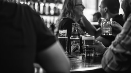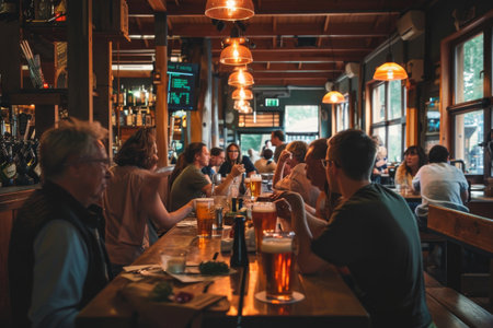 A group of people drinking beer at the pub's brewery restaurant AI generated