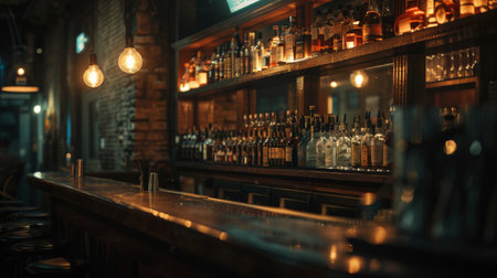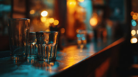 A cozy bar scene featuring glimmering glassware and warm lighting, inviting social interactions and creating a relaxing atmosphere perfect for gatherings and celebrations.