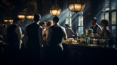1920s speakeasy vibe dim lights flapper waitresses suited patrons