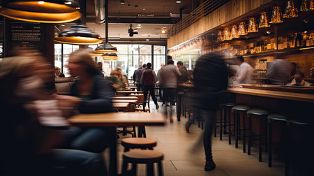 hipster loft modern bar cafe with people blurred motion, vibes and atmosphere