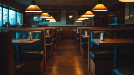 Cozy Diner Interior Decorated With Warm Lighting in an Urban Setting During Evening Hours