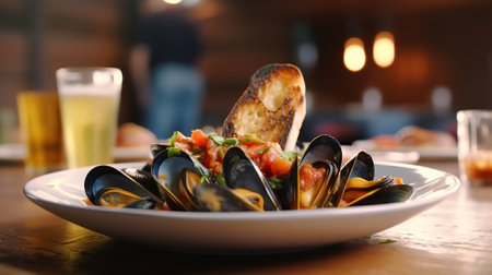 Tempting platter of moules frites with creamy sauce and beer, perfect for french cuisine lovers