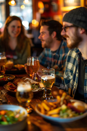 Group of friends bonding over delicious burgers and fries at a favorite local diner