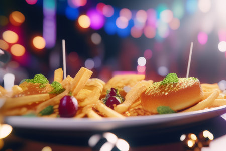 Delicious views of the dark chips with dark background fest-food of hamburger dish, generative AI