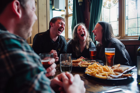 Happy Faces Sharing Pub Grub Delights
