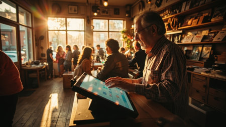 Small business owner working at his cafe