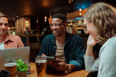 diverse colleagues out for drinks drinking beer