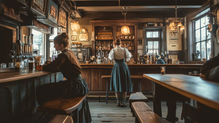 Female bartender tapping beer in bar.