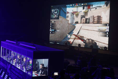 St. Petersburg, Russia - February 22, 2018: Teams of gamers during St. Petersburg Cyber-Sport Festival. Main event of the festival is the Counter-Strike: Global Offensive tournament
