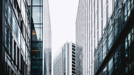 A stunning view of modern glass buildings in an urban setting, reflecting light and surroundings, showcasing contemporary architecture and design.