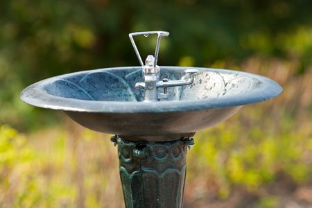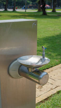 Green color fitter/ Drinking fountain in the park, Selective focus with place for your text
