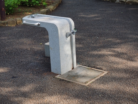 Drinking water fountain in park on a sunny day, no person. Selective focus. High quality photo