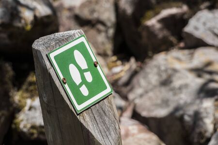Hiking route in Cape Town to Table Mountain. Signpost with footprints.