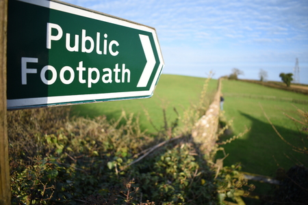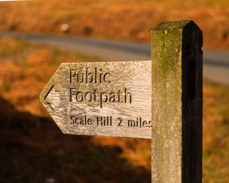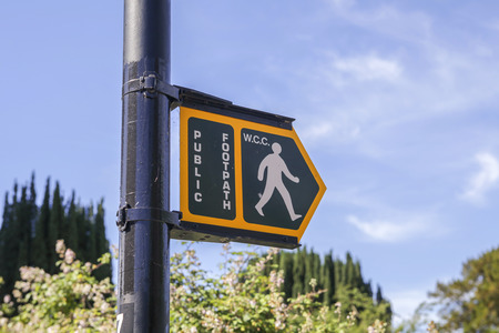public foot path sign eaves green road meriden solihull west midlands england uk