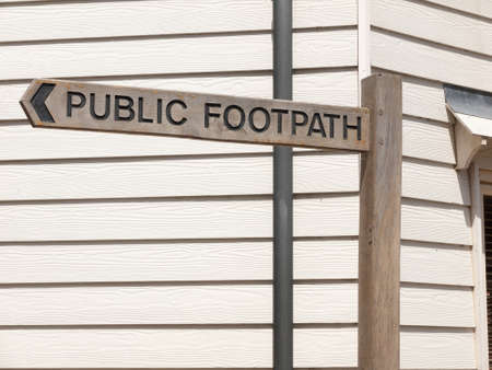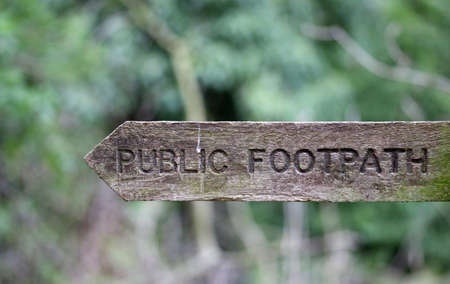 close up of black wooden public footpath sign way trail; essex; england; uk