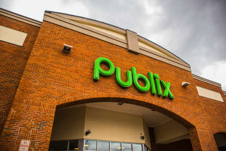 Snellville, Ga / USA - 03 13 20: View of a Publix logo at the entrance of the store