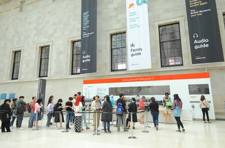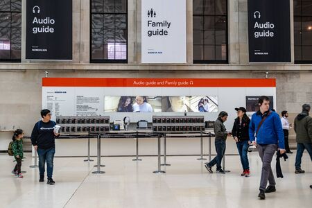 London / UK - Nov 28, 2019: audio guide rental in Great Court in British Museum, London