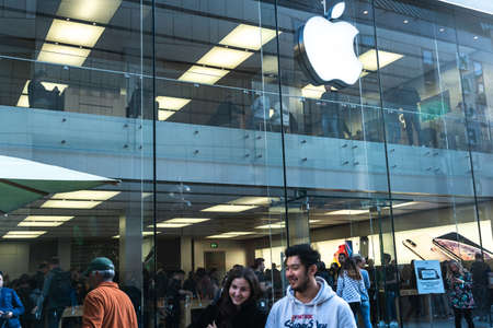 MUNICH, GERMANY - Sep 19, 2019: Apple store in Munich Germany. Young teenager student people hippster buying latest modern design tech for university and school