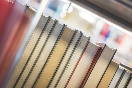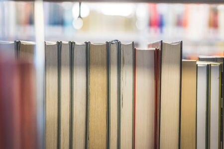 Abstract defocused background. Books in university library. Knowledge and learning theme