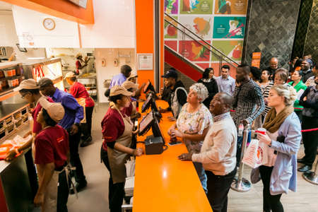 Johannesburg, South Africa - July 13 2017: Customers at a Popeyes Take Out Fast Food Restaurant