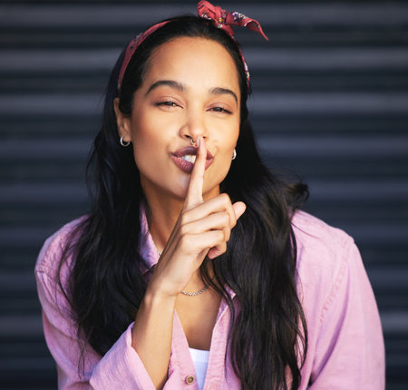 Portrait of a beautiful African American woman asking for silence