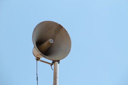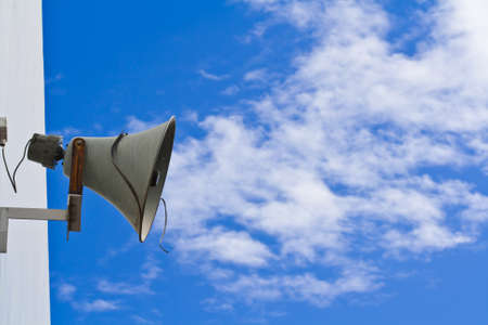 Loudspeaker outdoor Community radio broadcasting on blue sky