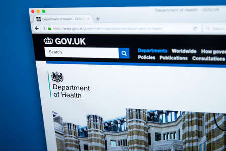 LONDON, UK - OCTOBER 30TH 2017: The homepage of the Department of Health on the UK Government website, on 30th October 2017.