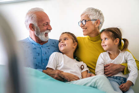 Smiling Multi-Generation Family Relaxing In Lounge At Home Together