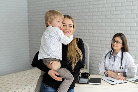 Portrait of mother and child at a doctors appointment. Pediatrician meeting with mother and child in hospital