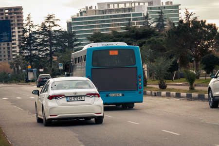 Batumi. Georgia- March 19, 2021: Municipal bus on the streets of Batumi