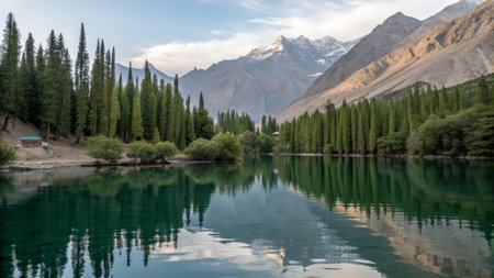 Generative AI Image of Pakistan Independence Flag Fluttering by the Lake at Sunrise