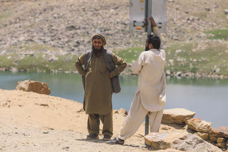 Gilgit, Pakistan - June 09, 2018: Group of an Pakistani Men in Traditional Pakol smiling and posing for the Picture