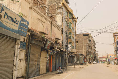 Peshawar, Pakistan - July 10, 2021: No People on the Empty Streets of Pakistani City Center Peshawar near White Mosque