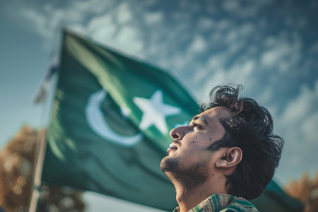Generative AI Image of Pakistani Man with Flag Pakistan in Bright Day