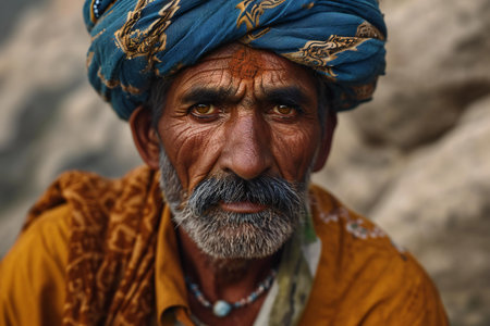 In a village in India, a group of elderly Muslim men engage in animated conversations, exchanging stories and wisdom amidst a colorful ambiance that defines their rustic community.