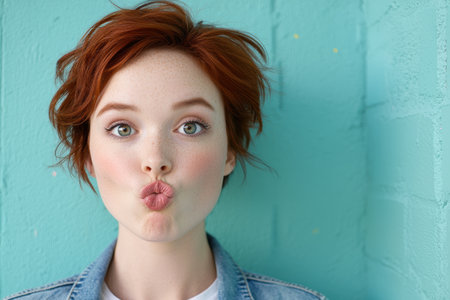 Pretty young caucasian girl sending kiss